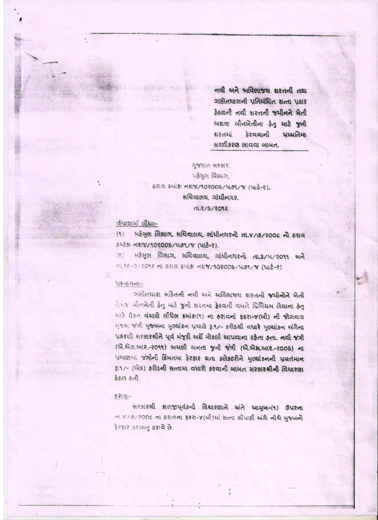 Cirular for Agriculural and Non Agricultural land / Navi Sharat and Juni Sharat Dated: 02/06/2012